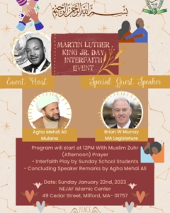 Martin Luther King Jr. Interfaith Event + Add to Google Calendar + iCal / Outlook export Date Jan 22 2023 Expired! Time 12:00 PM Category NEJAF events Regular Programs Yearly Events Share this event